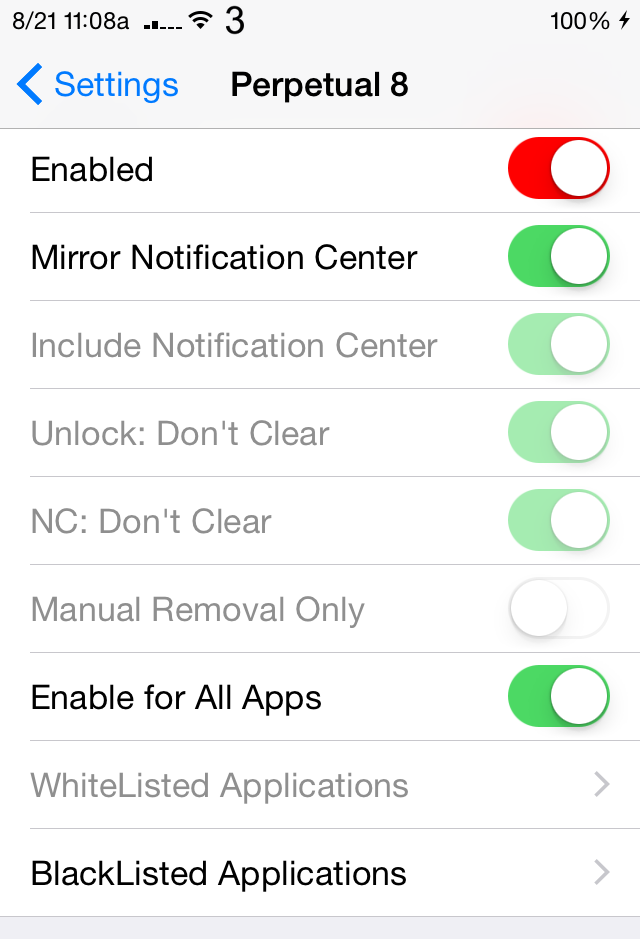 With this new option enabled, the only way to clear a Perpetual based LS item is by sliding it to the left and tapping the X or Ignore, Mark as Read, etc. or by respringing or rebooting.