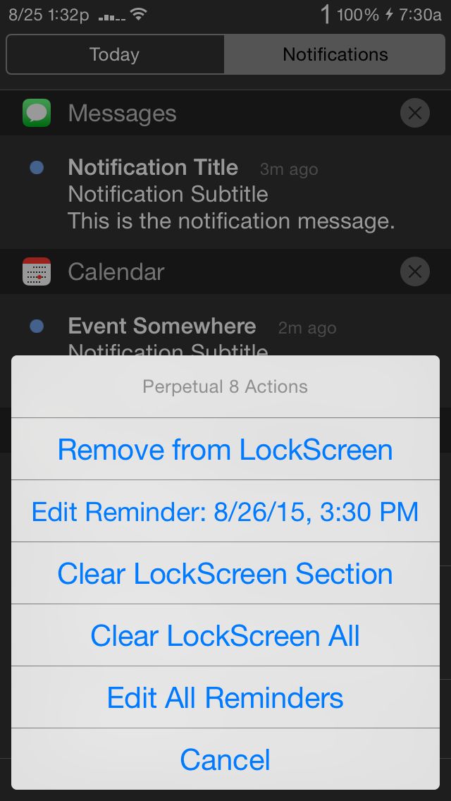 LS items and NC items often have different bulletenIDs even though they are for the same notification and this sometimes confuses Perpetual and causes issues such as if you add a reminder to a notification received while your device is locked and before unlocking it